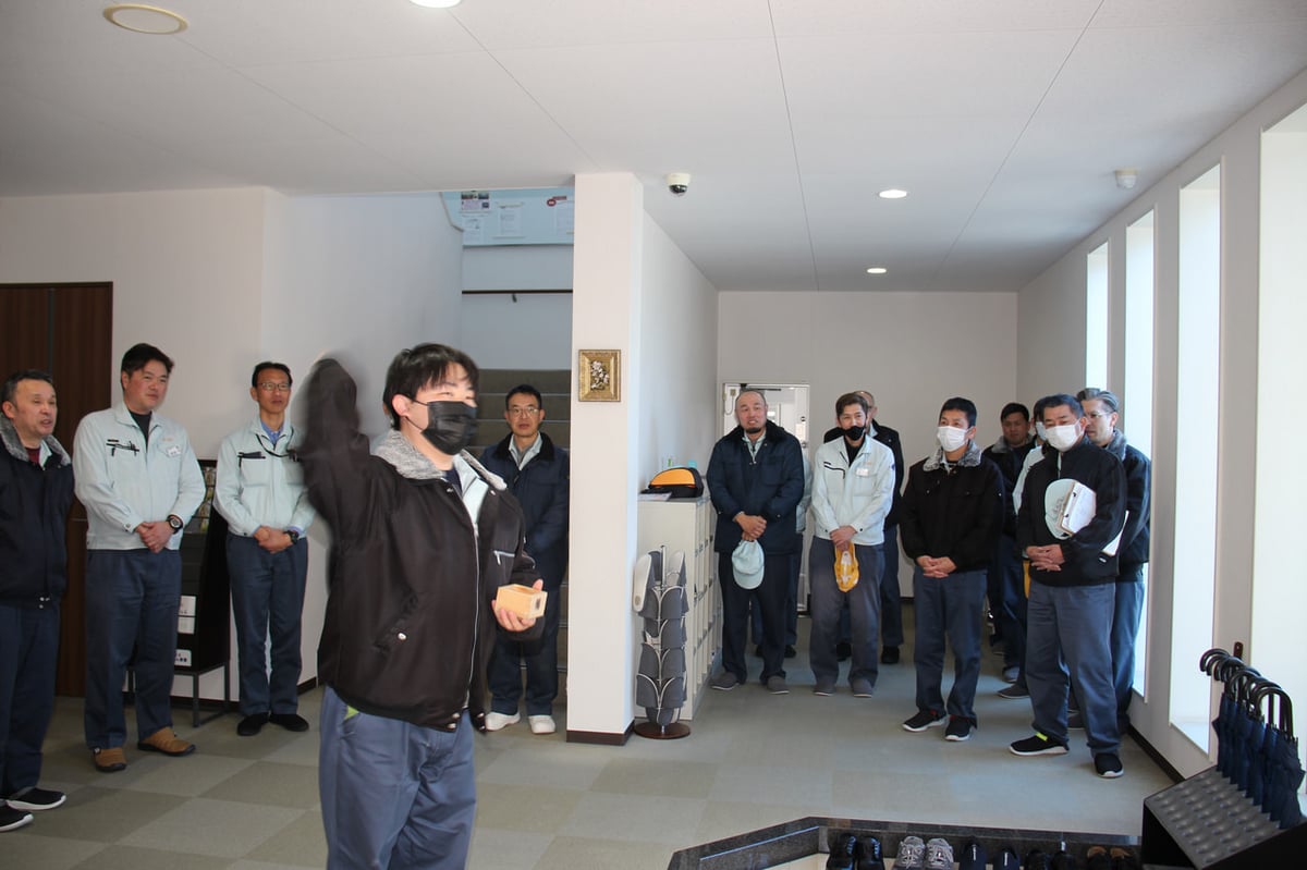 「困難(鬼)」は工場の外に追い出し、良いご縁やチャンスという「福」を招き入れたいとの年男の言葉を皮切りに、みんなで「鬼はー外!福はー内!福でもってぶっとめろ!(←方言?( ´∀` ))」